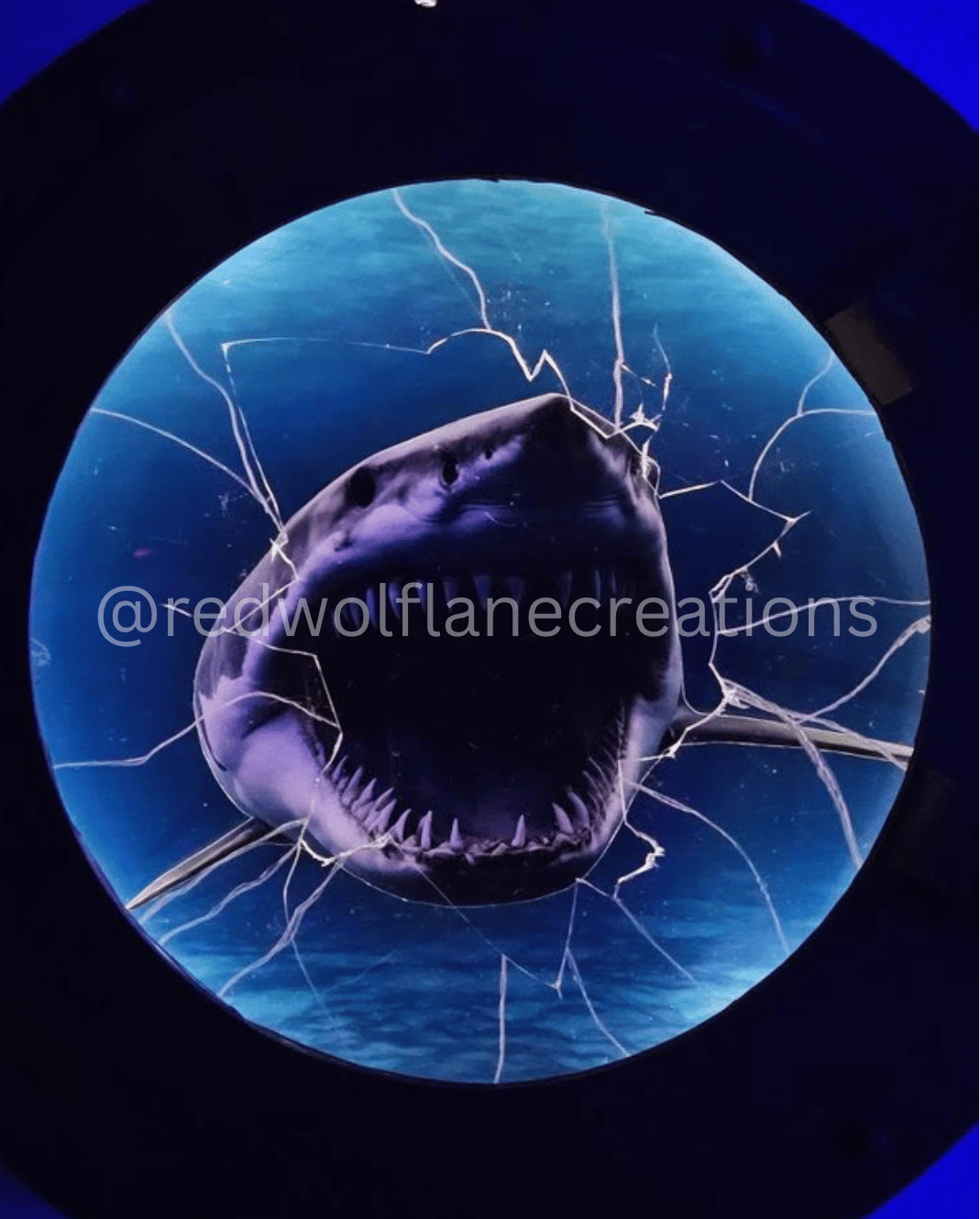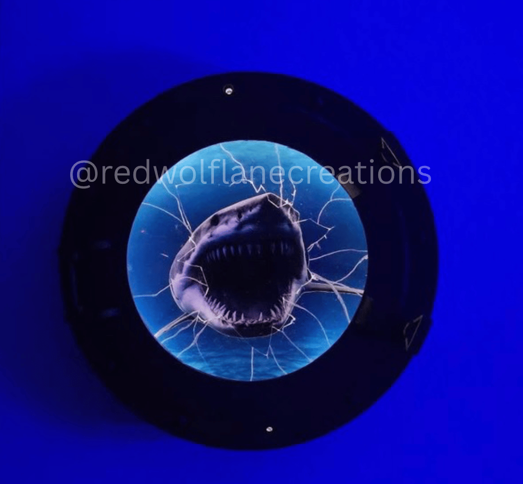 LED Shark Attack Porthole Wall Light – Cracked Glass Illusion Nautical Horror Decor