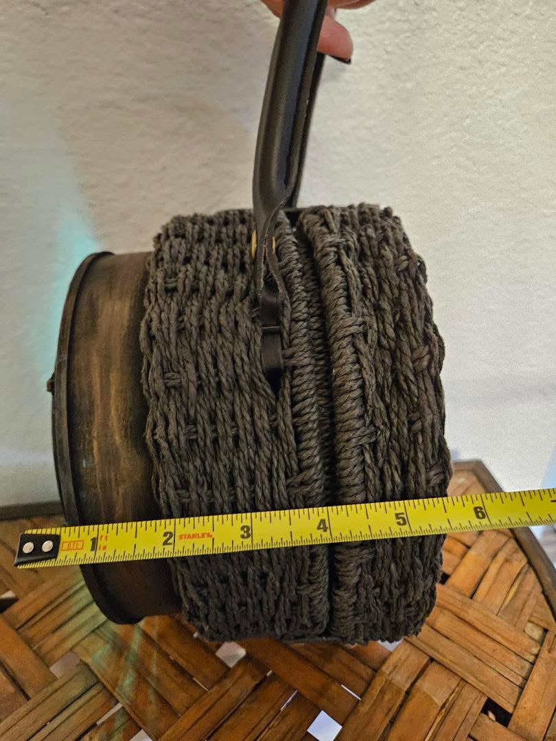 Measures about 7 inches in diameter and 5.5 inches in depth.